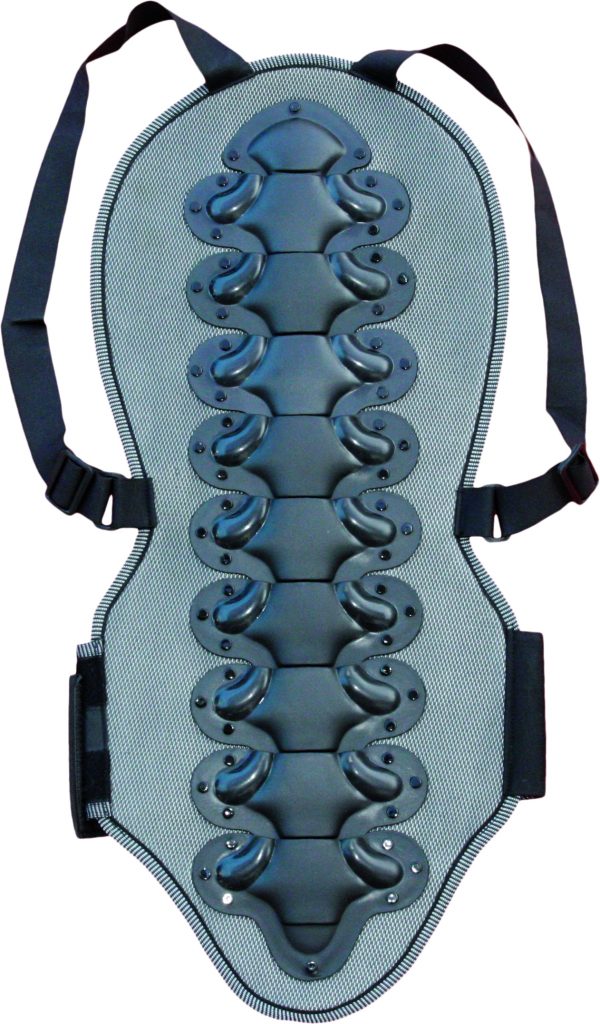 Rücken. Seitliche Verstellmöglichkeiten an den Armen und in der Taille. Im Rücken ist ein Nierenschutz eingearbeitet. Reflexstreifen sorgen für Sicherheit.